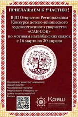 АНО Центр изучения и сохранения культурного наследия Нагайбаков «КОЯШ» (Солнце) приглашает к участию в III Открытом Региональном конкурсе детско-юношеского художественного творчества «САК-СОК» по мотивам нагайбакских сказок