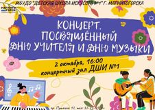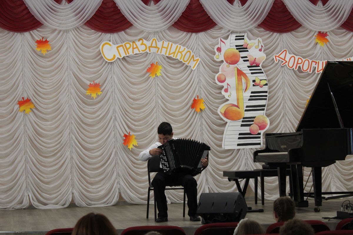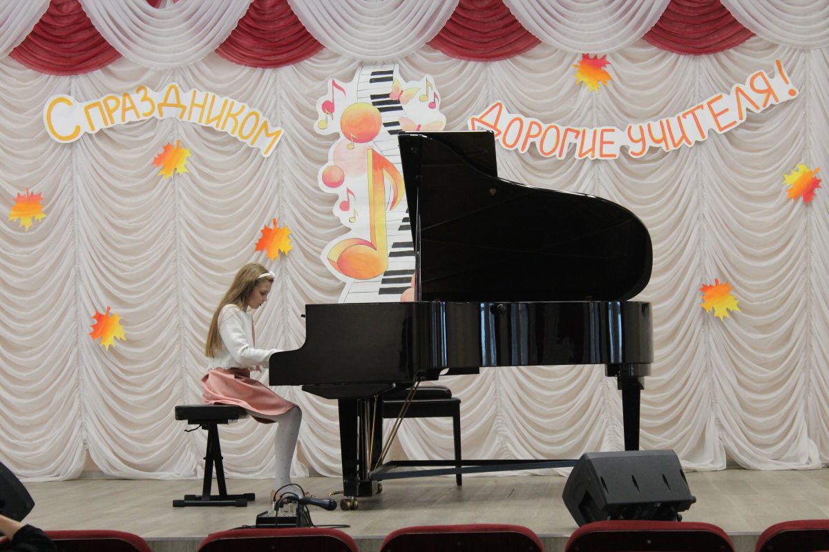 Праздничным концертом 2 октября отмечали в ДШИ №1 День учителя и День музыки. Ведущая концерта Гришина О.Г. сказала много добрых слов в этот праздничный день. В торжественной атмосфере поздравили своих учителей музыкальными поздравлениями ученики школы искусств Рожнова Екатерина (преп. Гиленко Ю.И.), Савалев Максим (преп. Храмцова А.С.), Борисова Мария (преп. Копылова Т.В.), Засухин Кирилл (преп. Багаутдинова Д.Д.), Колесникова Есения (преп. Королева К.Ю.), Зинина Виктория (преп. Винидиктова Ю.А.), Поздняк Мирослава (преп. Костеркина Н.Н.), сыграл ансамбль скрипачей «Элегия» (рук. Морозова Е.В., конц. Копылова Т.В.) и спела преподаватель эстрадного вокала Лобанова Д. А..