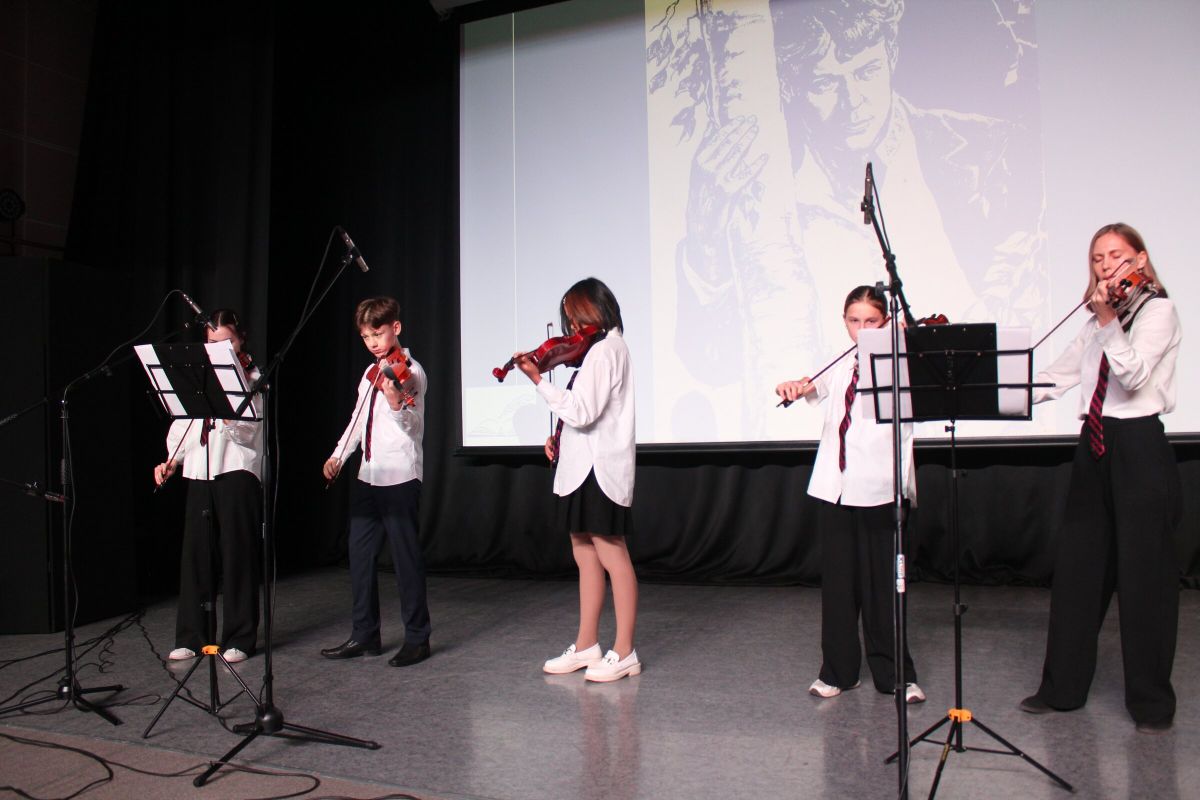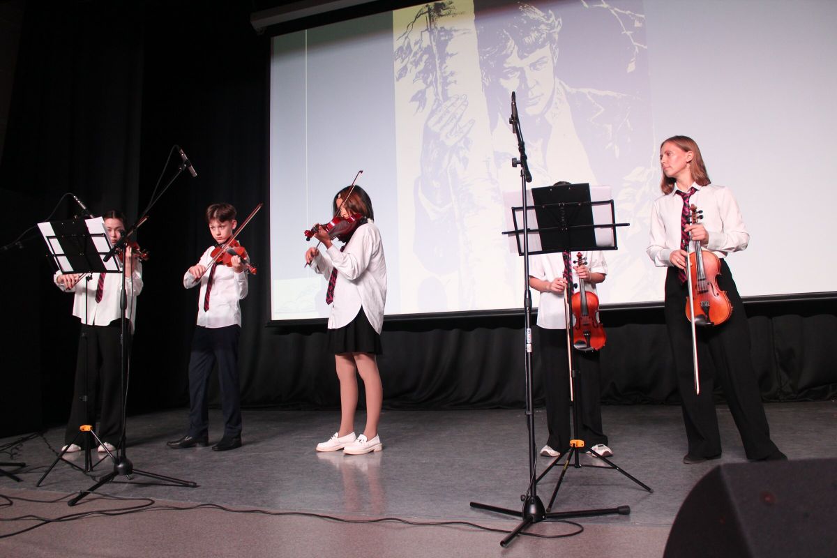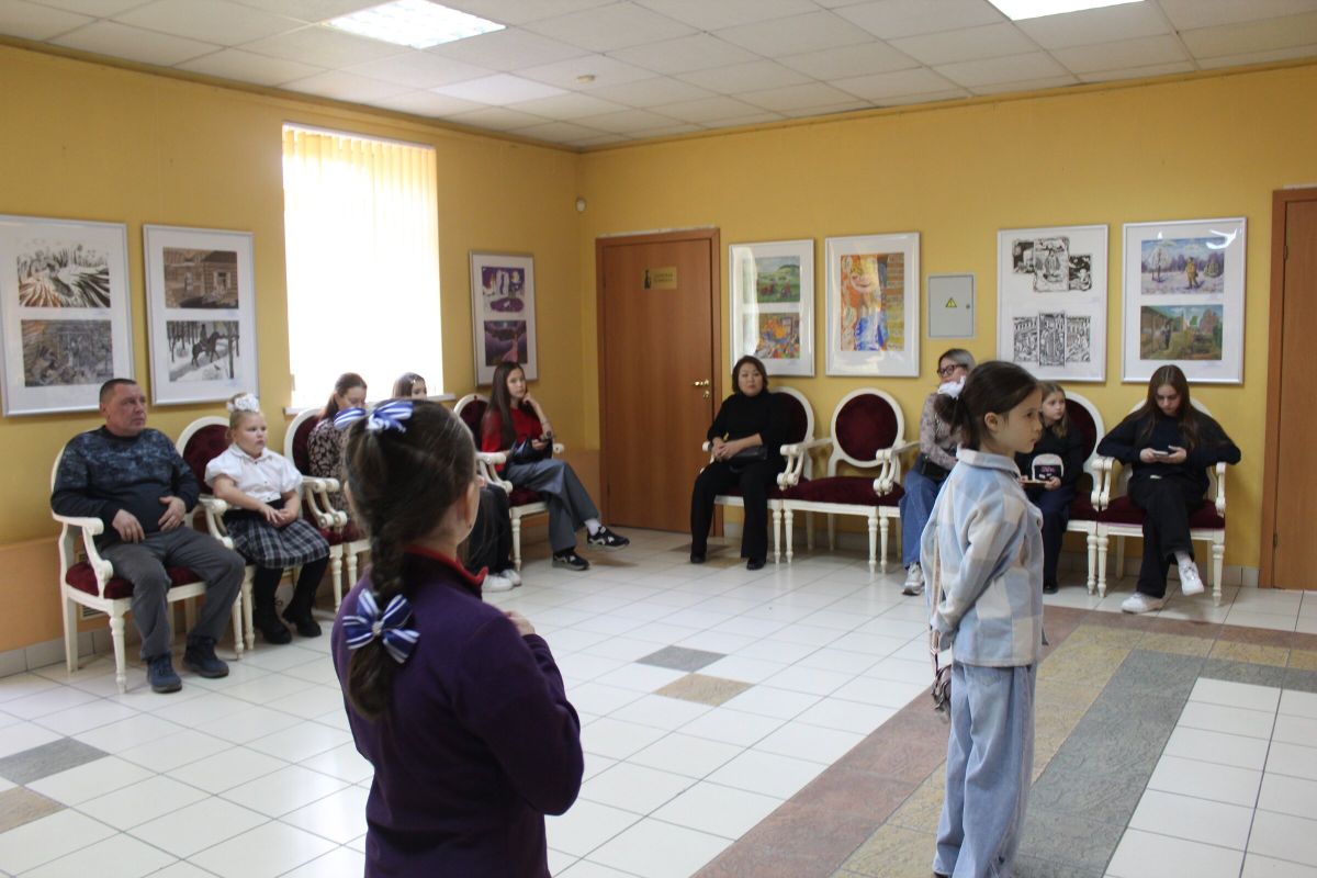 На открытии выставки с музыкальными номерами выступили ансамбль скрипачей «Элегия» (руководитель Морозова Е.В.), Гришина Ольга Геннадьевна, Засухин Кирилл (преп. Багаутдинова Д.Д.), Зинина Виктория (преп. Винидиктова Ю.А.).