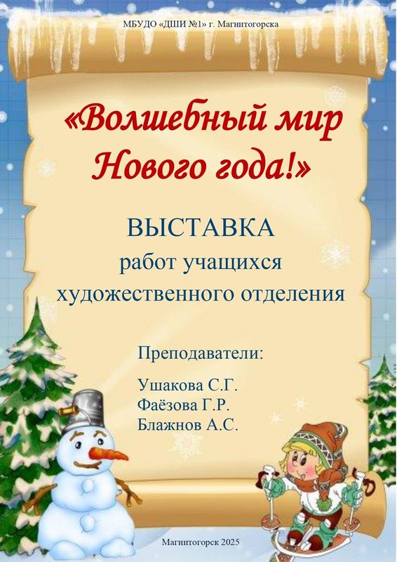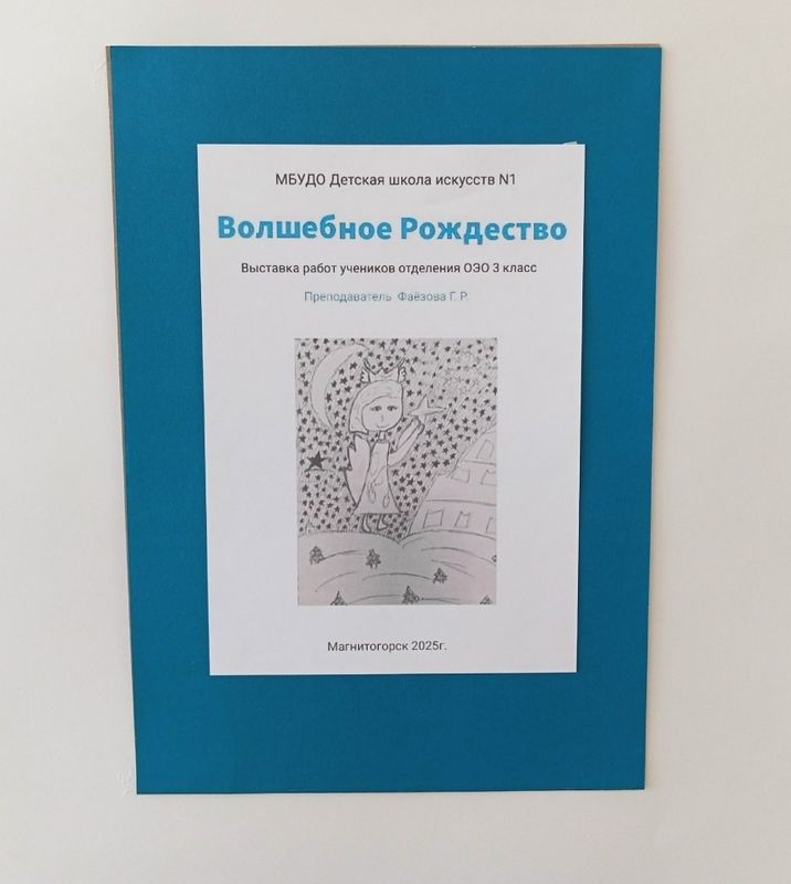 В Детской школе искусств №1 открылись 3 новые выставки. Это выставка рисунков учащихся 3 класса отделения ОЭО «Волшебное Рождество», преподаватель - Фаёзова Г.Р., выставка работ учащихся художественного отделения «Волшебный мир Нового года!» преподавателей Фаёзовой Г.Р., Ушаковой С.Г. и Блажнова А.С., выставка работ учащихся 1ДПП «Солнечные коты», преподаватель - Блажнов А.С..