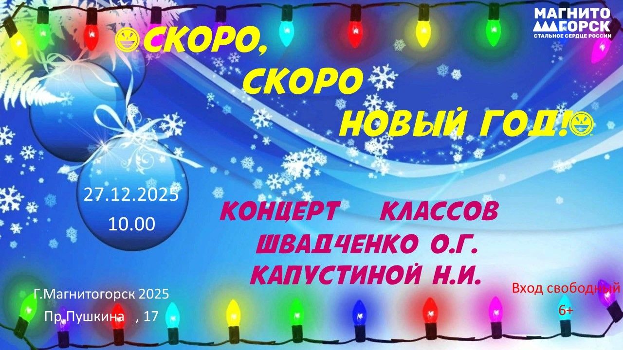 В преддверии Нового года 27 декабря состоялся концерт классов Капустиной Н.И. и Швадченко О.Г.. На концерте ребята с радостью играли на рояле и пели любимые песни.