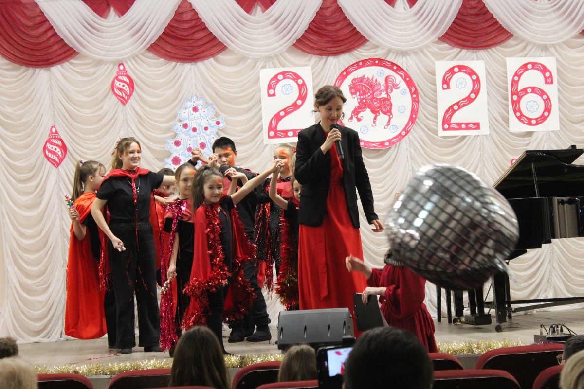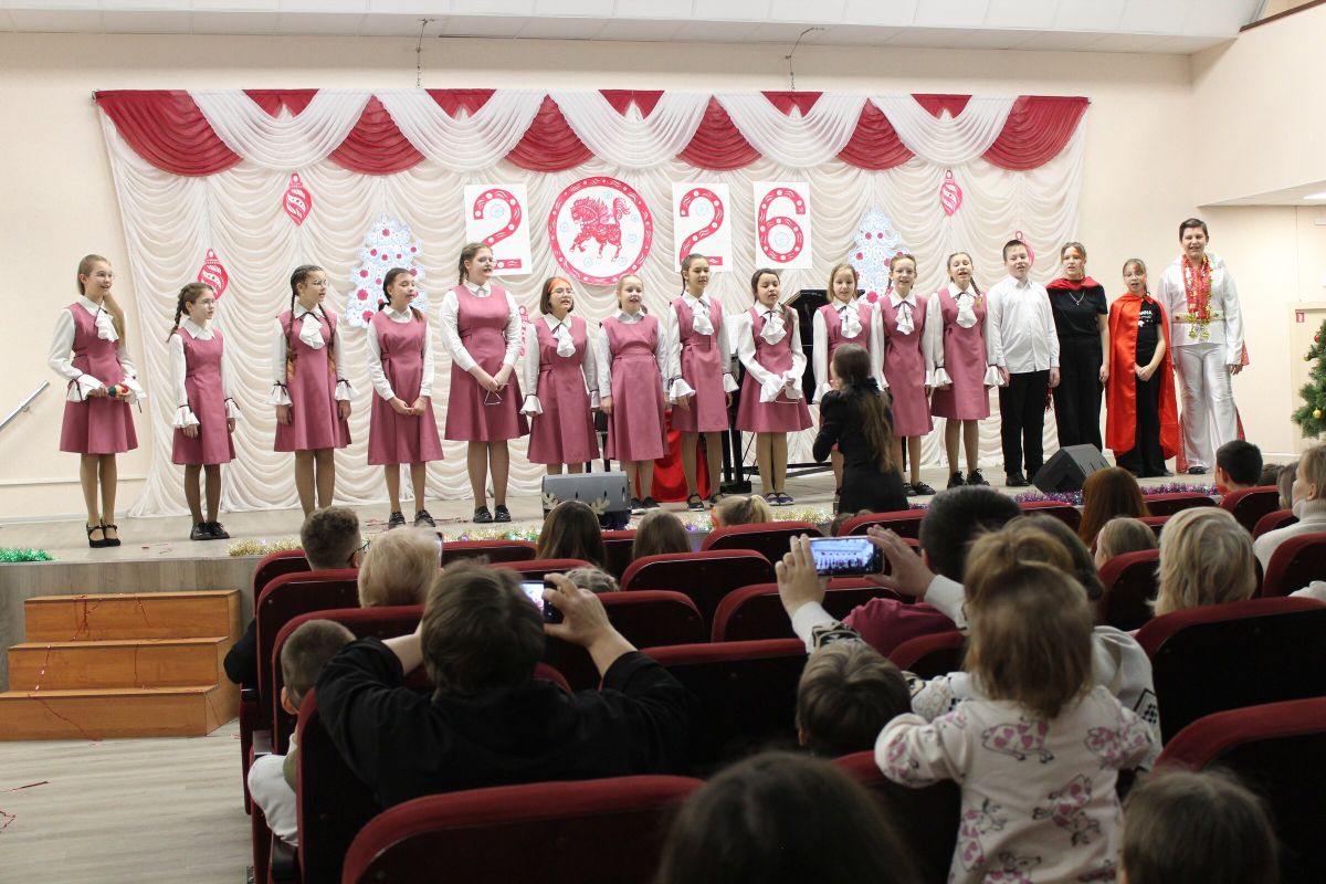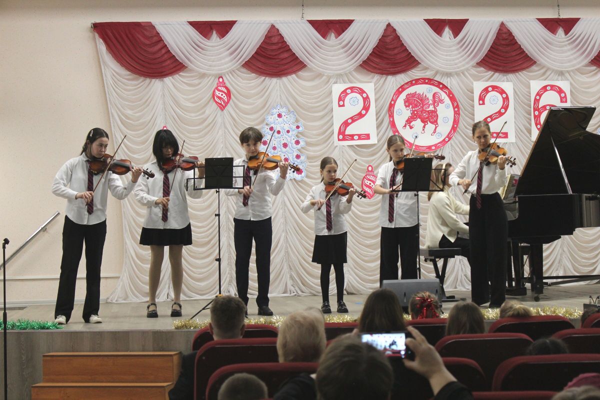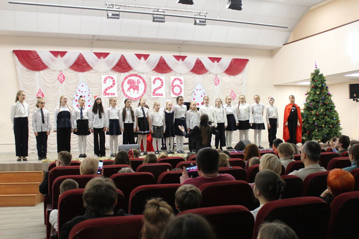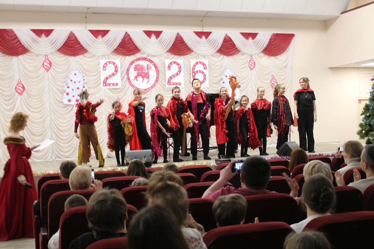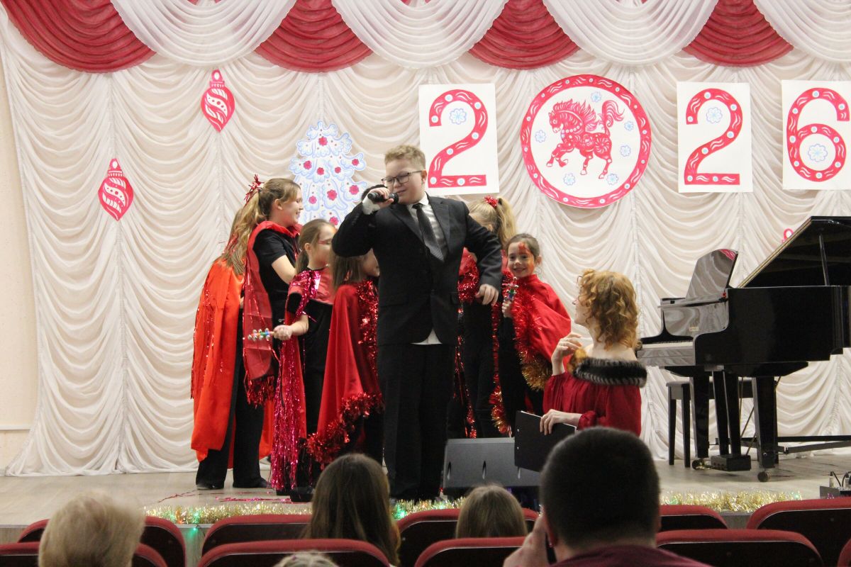 26 декабря в преддверии наступающего 2026 года в Детской школе искусств №1 состоялся школьный праздничный концерт «Новогодний серпантин», ведущая — Ксения Охроменко. Перед зрителями выступили творческие коллективы оркестр р.н.и. «Созвучие» (рук. Храмцова А.С., солистка - Ибрагимова Ю.И.), театральная студия «Играем в театр» (рук. Охроменко К.М.), ансамбль скрипачей «Элегия» (рук. Морозова Е.В., конц. Копылова Т.В.), младший и средний хоры (рук. Юшкина В.Ю., конц. Ибрагимова Ю.И.), ансамбль «Туесок» (преп. Винидиктова Ю.А.), спели и сыграли Фёдоров Никита и Рамазанова София (преп. Макеева С.В.), Чепелевич Кирилл и Копылова Т.В., Канаев Иван и Капустина Н.И., Киселёв Денис (преп. Костеркина Н.Н.) и дуэт флейт: Куршук Александра и Гришина О.Г., Ахметзянова Валерия (преп. Винидиктова Ю.А.), Поздняк Мирослава (преп. Костеркина Н.Н.).