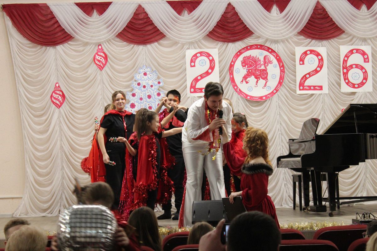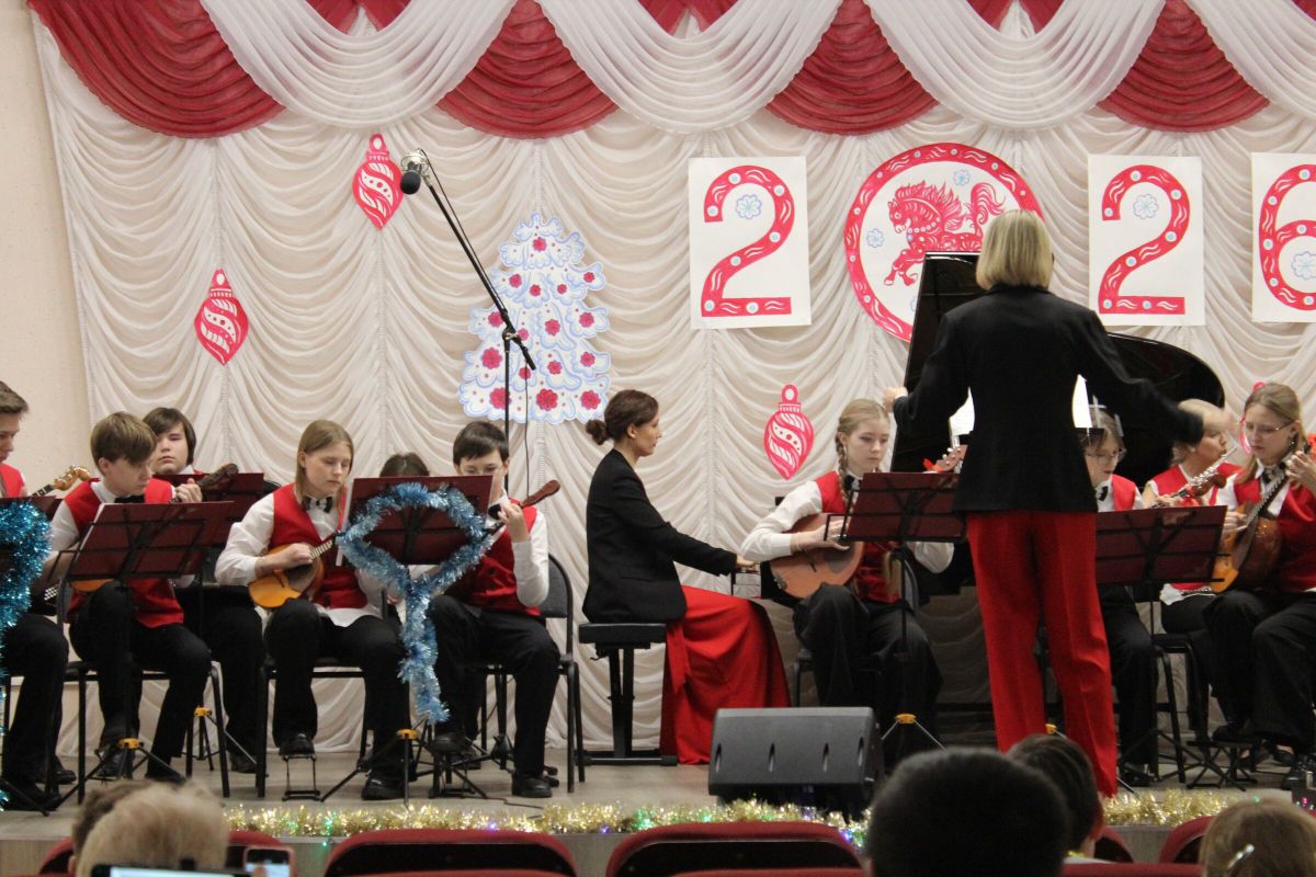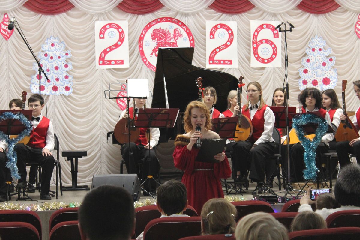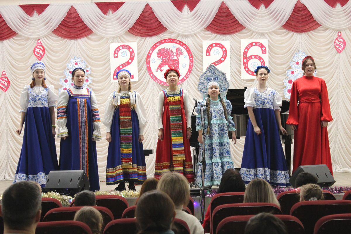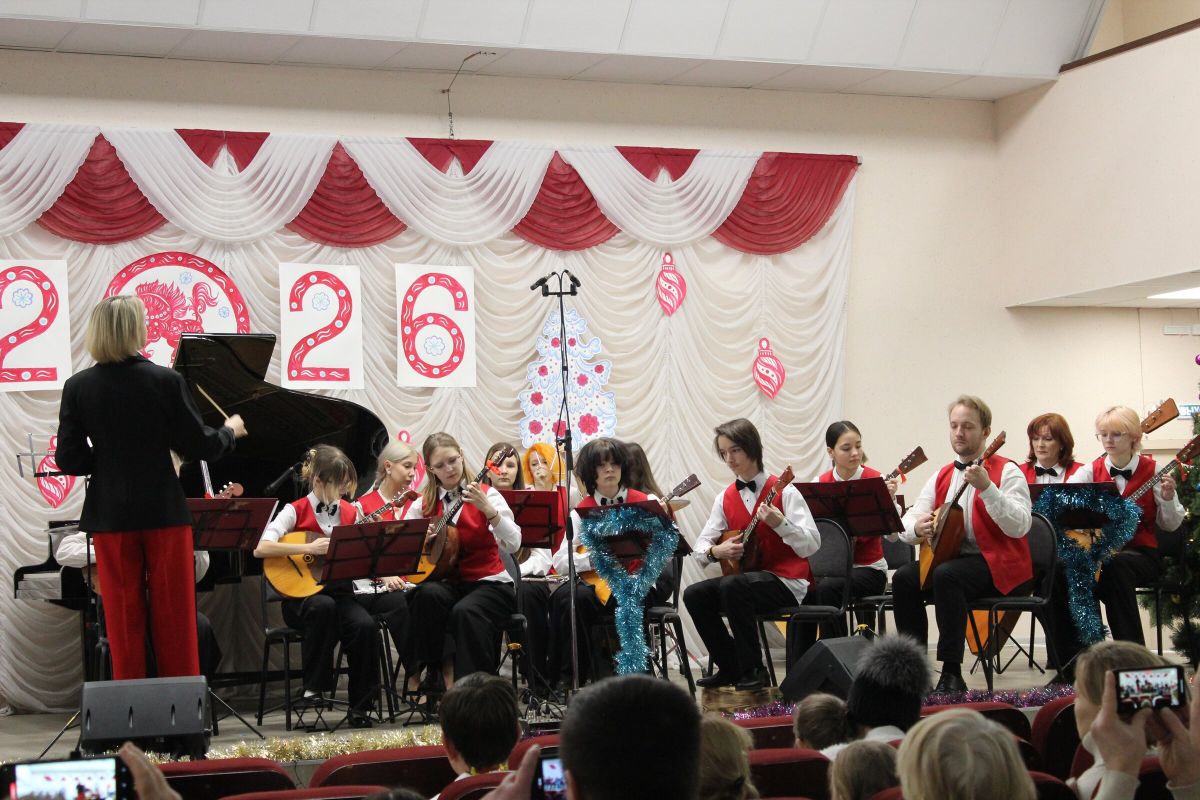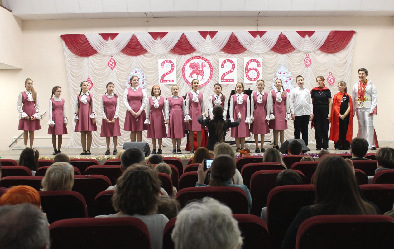 26 декабря в преддверии наступающего 2026 года в Детской школе искусств №1 состоялся школьный праздничный концерт «Новогодний серпантин», ведущая — Ксения Охроменко. Перед зрителями выступили творческие коллективы оркестр р.н.и. «Созвучие» (рук. Храмцова А.С., солистка - Ибрагимова Ю.И.), театральная студия «Играем в театр» (рук. Охроменко К.М.), ансамбль скрипачей «Элегия» (рук. Морозова Е.В., конц. Копылова Т.В.), младший и средний хоры (рук. Юшкина В.Ю., конц. Ибрагимова Ю.И.), ансамбль «Туесок» (преп. Винидиктова Ю.А.), спели и сыграли Фёдоров Никита и Рамазанова София (преп. Макеева С.В.), Чепелевич Кирилл и Копылова Т.В., Канаев Иван и Капустина Н.И., Киселёв Денис (преп. Костеркина Н.Н.) и дуэт флейт: Куршук Александра и Гришина О.Г., Ахметзянова Валерия (преп. Винидиктова Ю.А.), Поздняк Мирослава (преп. Костеркина Н.Н.).
