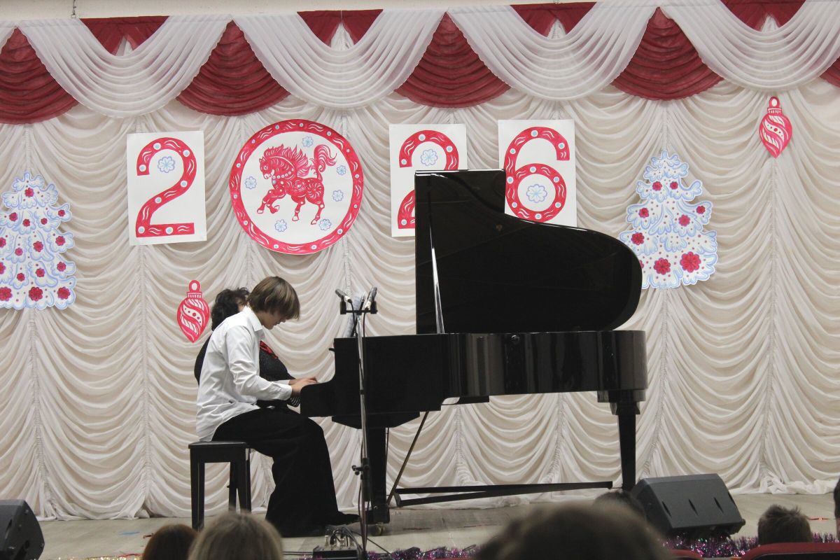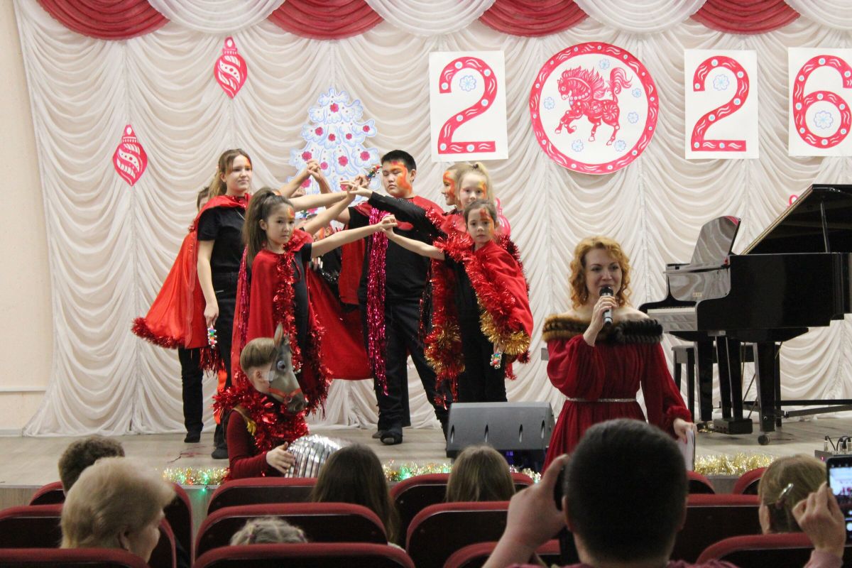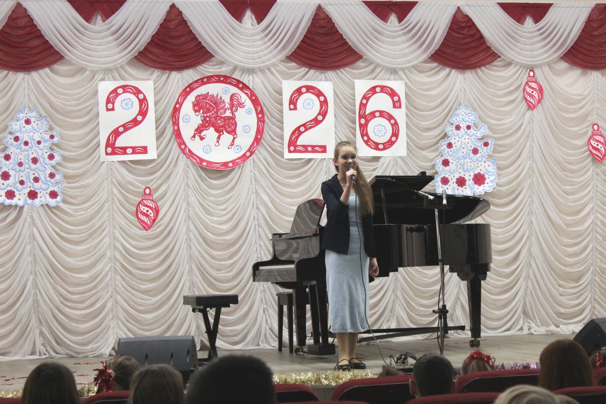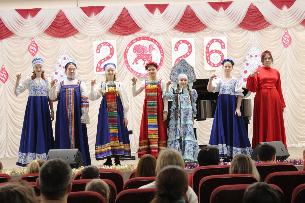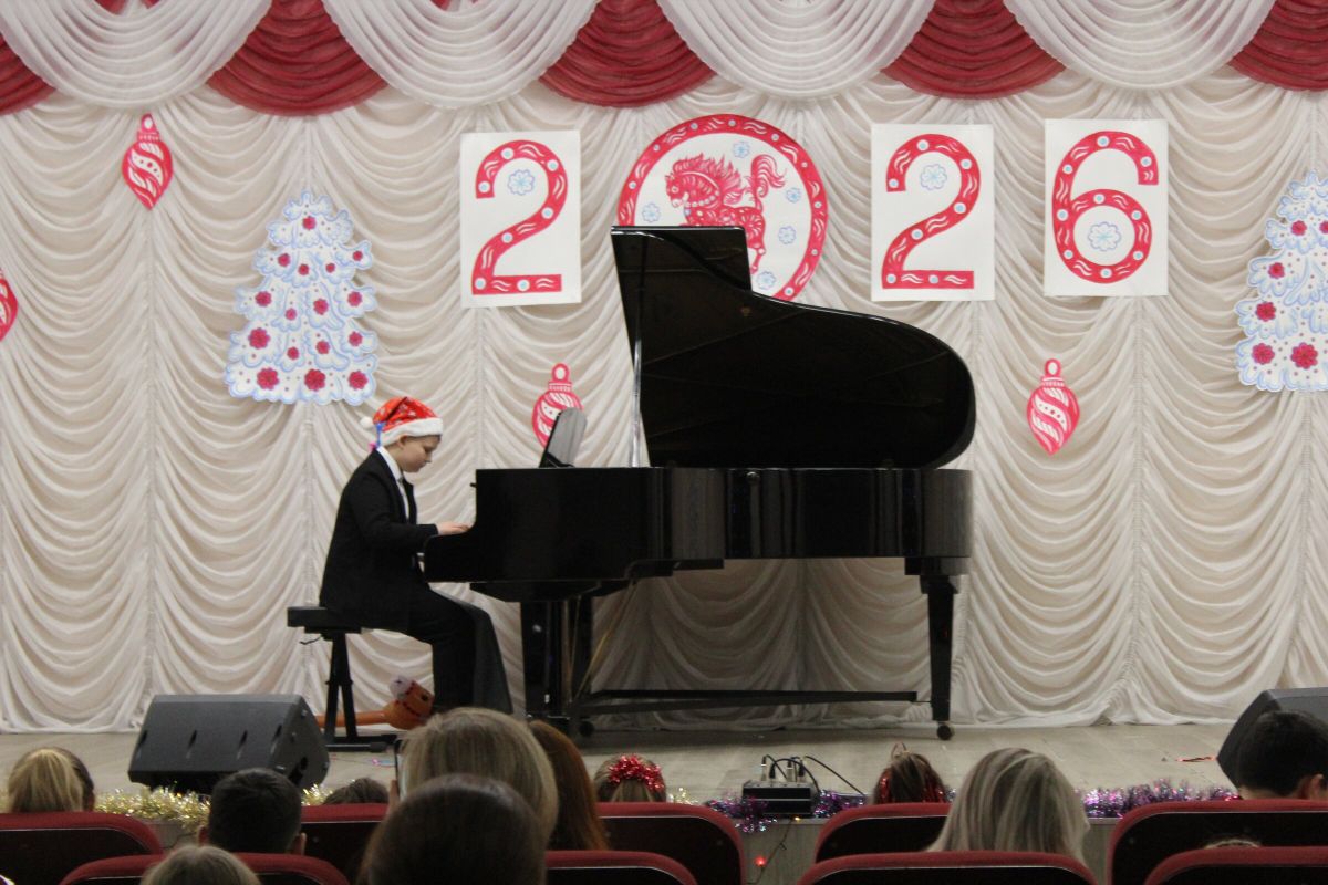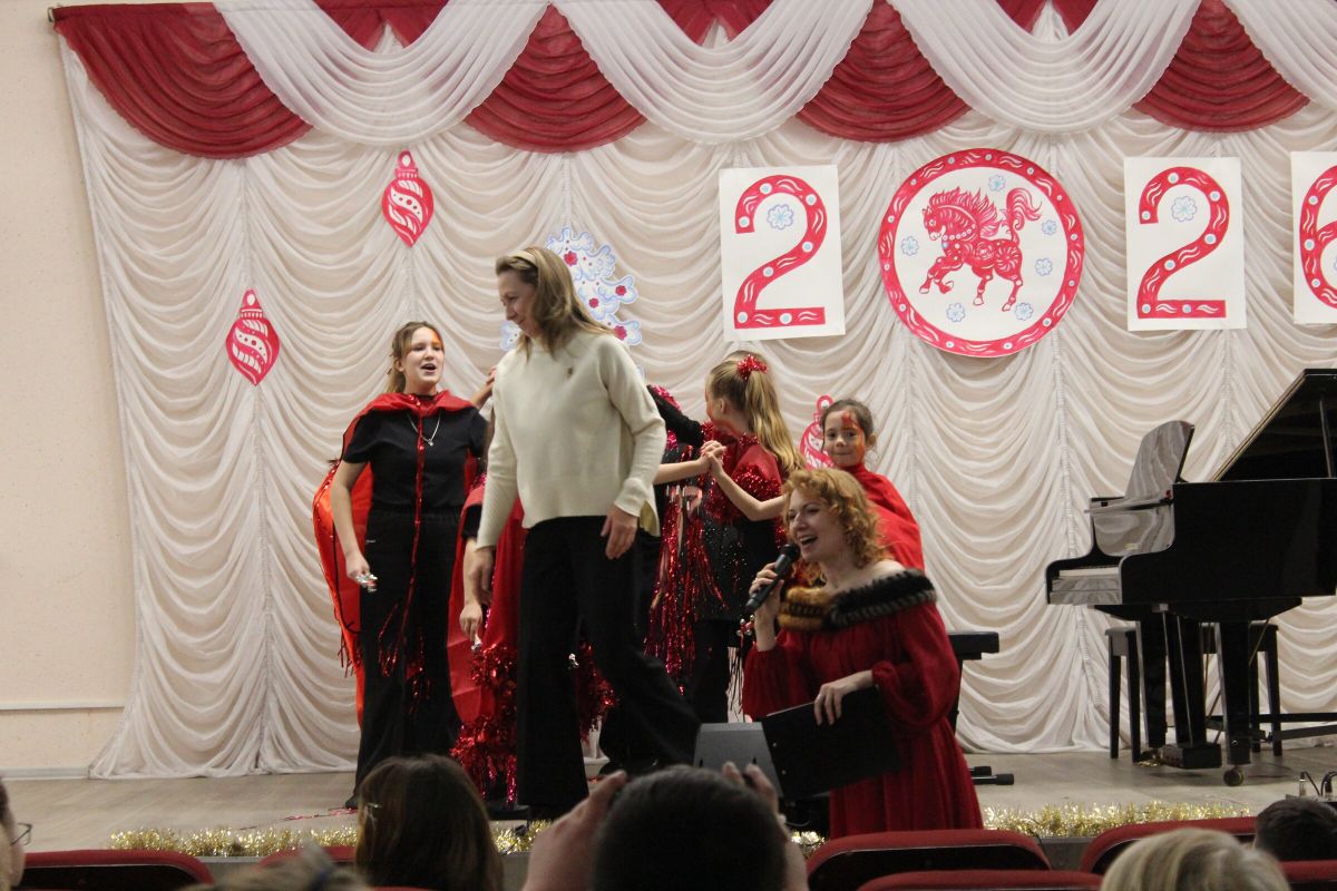 26 декабря в преддверии наступающего 2026 года в Детской школе искусств №1 состоялся школьный праздничный концерт «Новогодний серпантин», ведущая — Ксения Охроменко. Перед зрителями выступили творческие коллективы оркестр р.н.и. «Созвучие» (рук. Храмцова А.С., солистка - Ибрагимова Ю.И.), театральная студия «Играем в театр» (рук. Охроменко К.М.), ансамбль скрипачей «Элегия» (рук. Морозова Е.В., конц. Копылова Т.В.), младший и средний хоры (рук. Юшкина В.Ю., конц. Ибрагимова Ю.И.), ансамбль «Туесок» (преп. Винидиктова Ю.А.), спели и сыграли Фёдоров Никита и Рамазанова София (преп. Макеева С.В.), Чепелевич Кирилл и Копылова Т.В., Канаев Иван и Капустина Н.И., Киселёв Денис (преп. Костеркина Н.Н.) и дуэт флейт: Куршук Александра и Гришина О.Г., Ахметзянова Валерия (преп. Винидиктова Ю.А.), Поздняк Мирослава (преп. Костеркина Н.Н.).