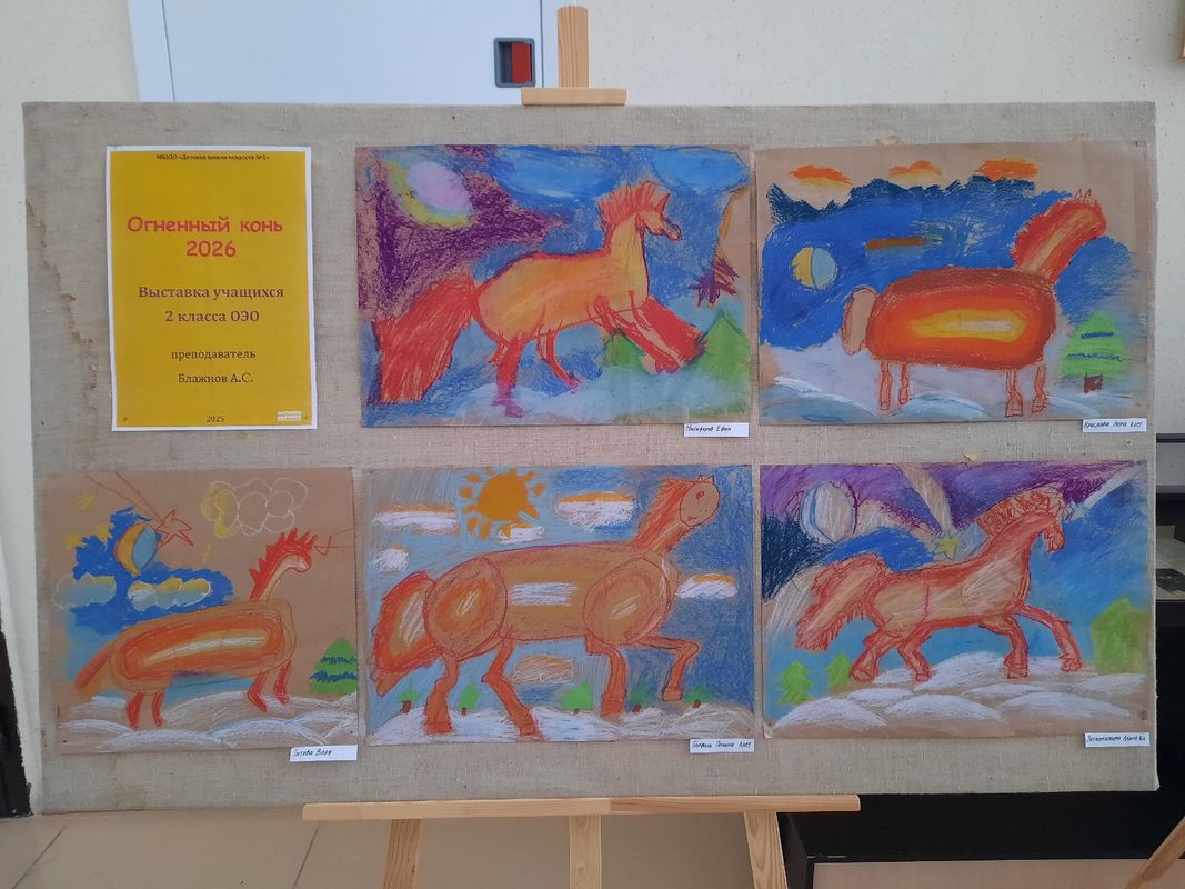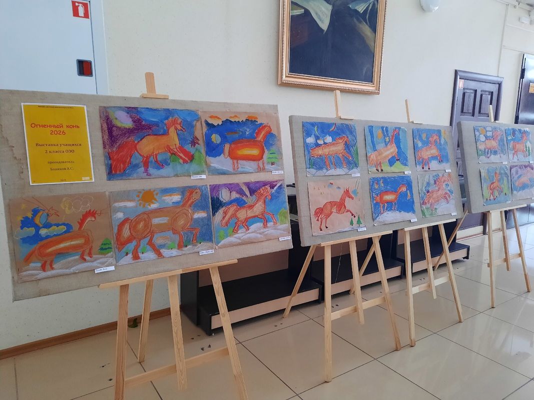 Как известно, 2026 год по восточному календарю - год Огненной Лошади. Учащиеся 2 класса ОЭО под руководством преподавателя Блажнова А.С. подготовили выставку «Огненный конь».