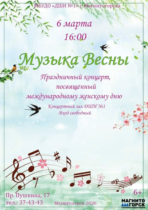 6 марта в Детской школе искусств №1 состоялся праздничный концерт, посвящённый Международному женскому дню «Музыка весны», ведущая — Винидиктова Ю.А.. В это день выступили хор 1 классов и хор младших классов (рук. Юшкина В.Ю., конц. Кулакова Н.Н. и Ибрагимова Ю.И.), в ансамбле сыграли Фёдоров Никита (преп. Макеева С.В.) и Фёдорова Надя (преп. Гришина О.Г.), Сарычева Кристина и Капустина Н.И., Фёдоров Никита и Рамазанова София (преп. Макеева С.В.), Васюнин Севастьян и Морозова Е.В., (конц. Копылова Т.В.). Сольно сыграли и спели Попова Саша (преп. Копылова Т.В.), Назарова Вика (преп. Храмцова А.С.), Савалев Максим (преп. Храмцова А.С.), Ващилова Милана (преп. Винидиктова Ю.А.), Поздняк Мирослава (преп. Костеркина Н.Н.), Зинина Вика (преп. Винидиктова Ю.А.), Мокичева Алиса (преп. Костеркина Н.Н.), Ахметзянова Лера (преп. Винидиктова Ю.А.).