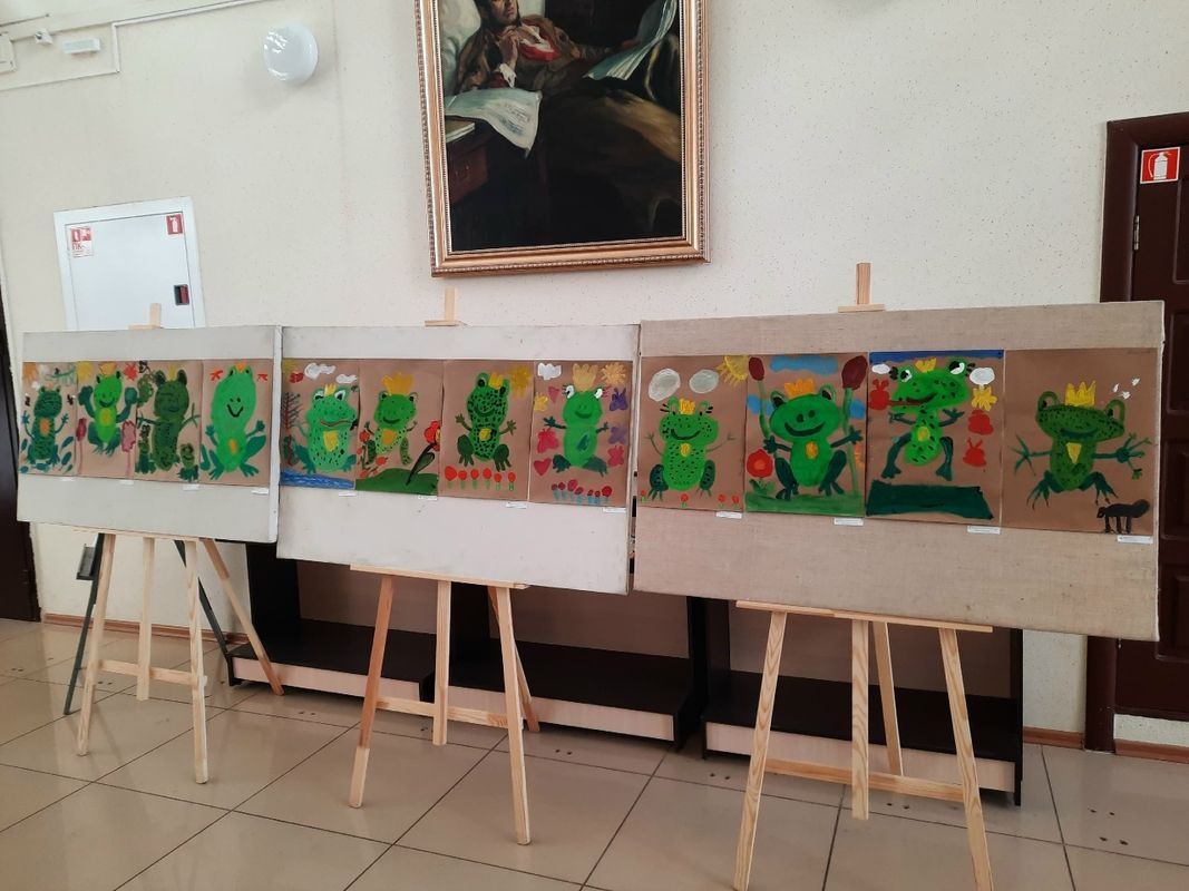 Выставка «Лягушонок» открылась в ДШИ №1, её нарисовали учащиеся отделения раннего эстетического развития, преподаватель - Фаёзова Г.Р..